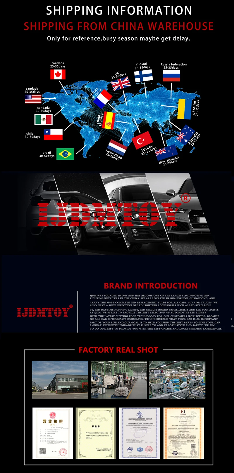 Powered with super bright amber / white / red LED lights inside for front / rear side marker lamps